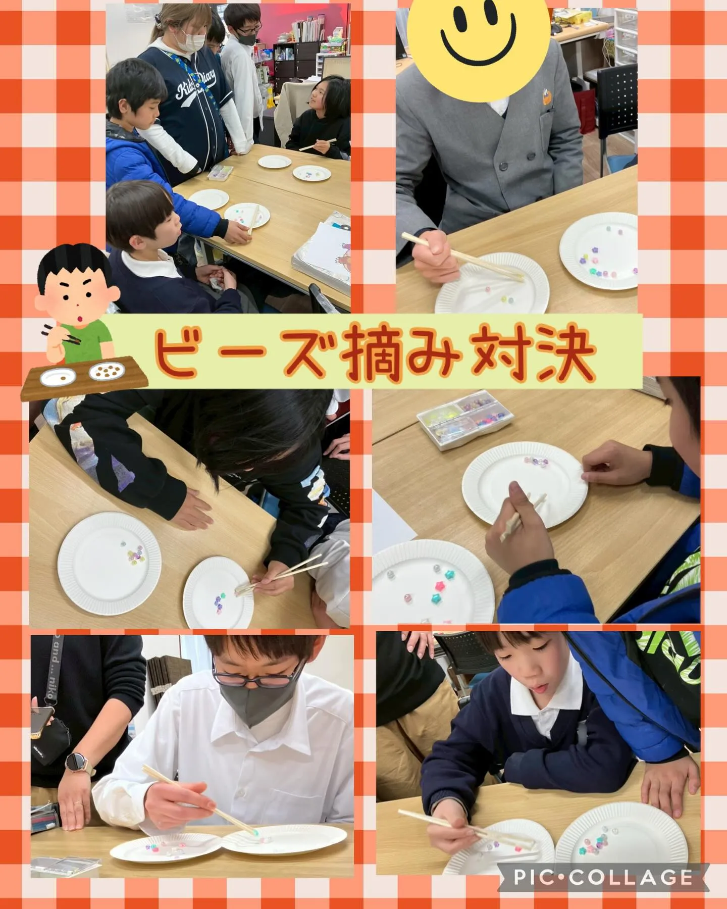 【お箸でビーズ摘み対決】の活動の様子です👀🥢