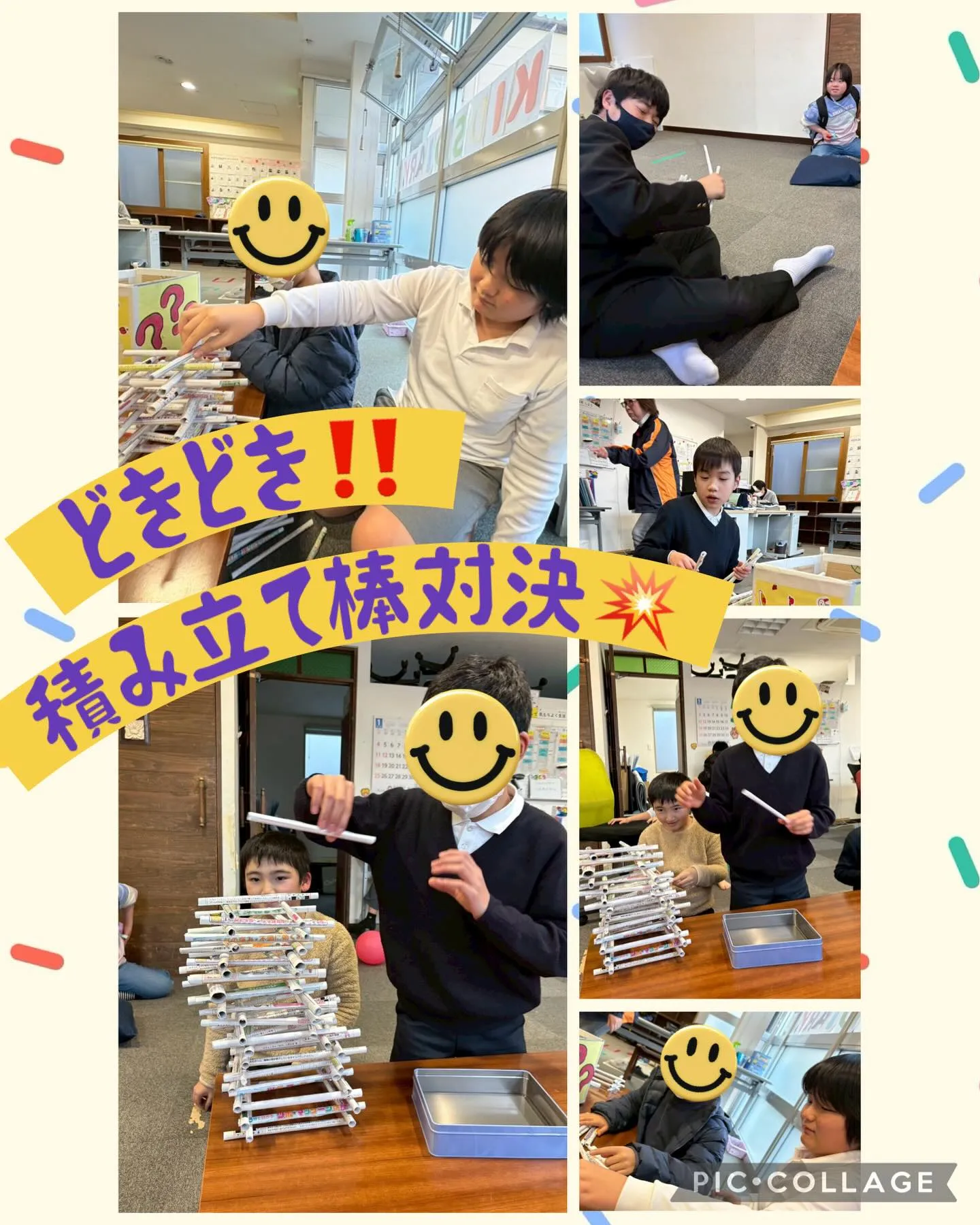 真剣な表情で一本ずつ慎重に積み上げる子どもたち👀✨