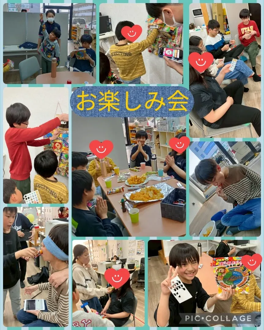 お菓子パーティーでは1年間頑張ったことや次の1年で頑張りたいことを発表して、みんなで机を囲んでお菓子やジュースをおしゃべりしながら楽しく頂きました🥳